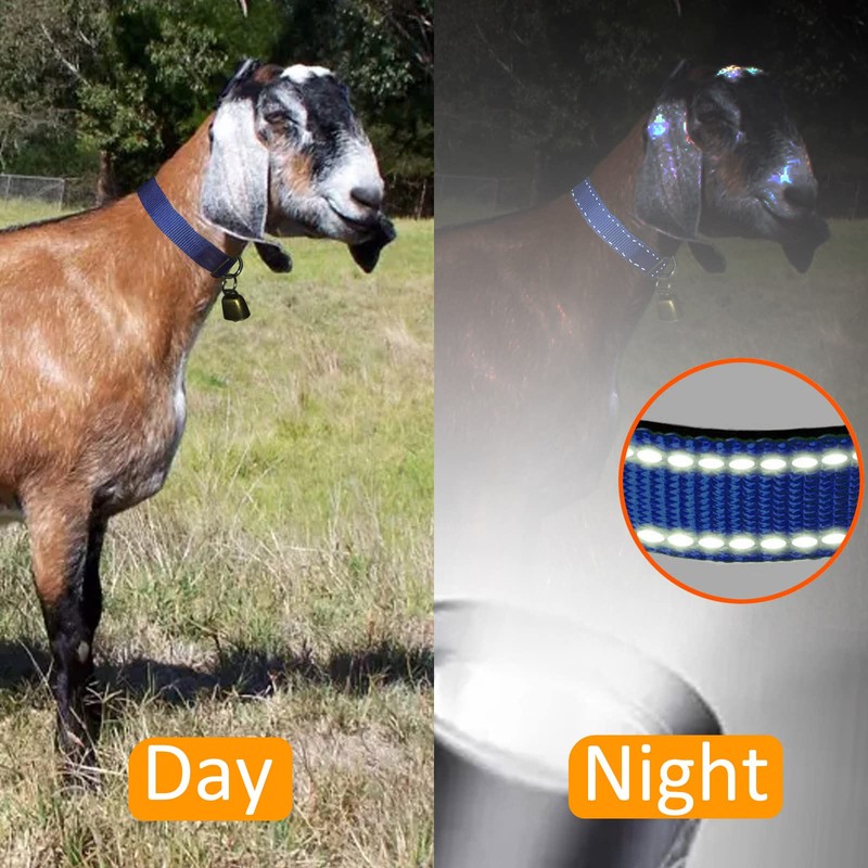• 【Package Includes】You will get 5 different color reflective goat collars(red, pink, blue, purple, black), 5 bells with key ring. These bright colors sheep collars can make you see your goats clearly when grazing, and the loud brass bell can cultivate the habit of your flock going home together to prevent the lamb from getting lost.