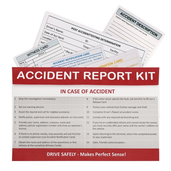 - Well Organized:Vehicle Accident Report kit is packaged in a sturdy, in Envelope that keeps kit components protected and organized.