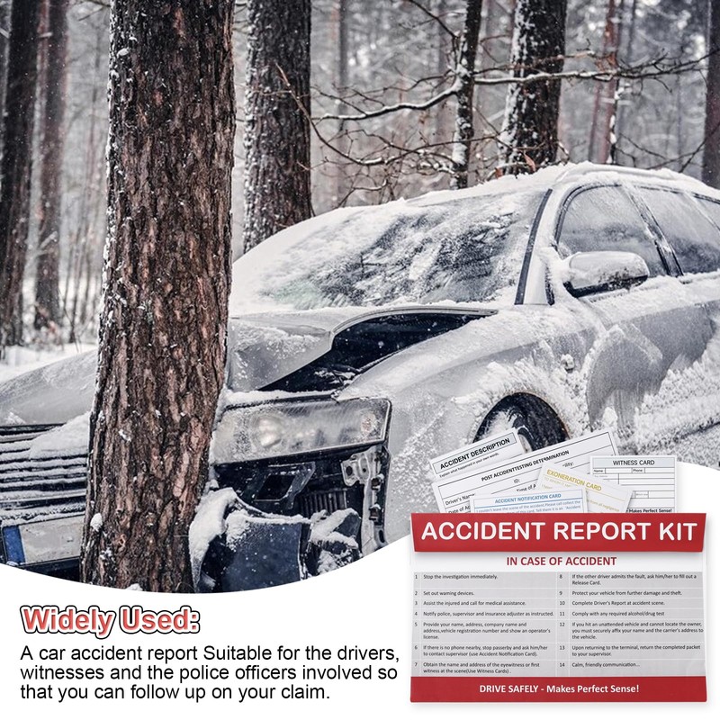 - You Will Receive:One piece Accident Report Envelope (9.45" x 6"); One piece Driver's Report At Accident Scene Form(3.9" x 2.76"); 4 Witness Cards(4.5" x 5.3");One piece Accident Notification Card(5.78" x 2"); 2 Exoneration Cards(11" x 8.5"); and a Accident detection card:Double-sided printing, folded in half.It Provides Details of the Accident.