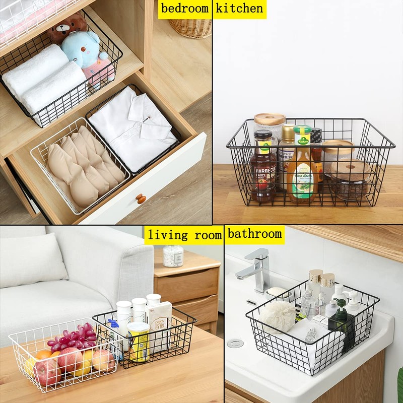 - STURDY AND SMOOTH WIRE BASKETS -- These wire baskets for storage is constructed of solid metal with black coated surface, smooth, sturdy and rustproof. You can use wire pantry basket to drain the fruit without worrying about rusting.