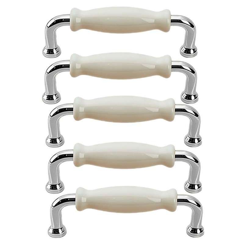 SENRISE 5 Pack Zinc Alloy Cabinet Handles, 3.77" (96mm) Hole Centers White Ceramic Cabinet Pulls Drawer Pulls Hardware for Cabinets Cupboard (Silver)