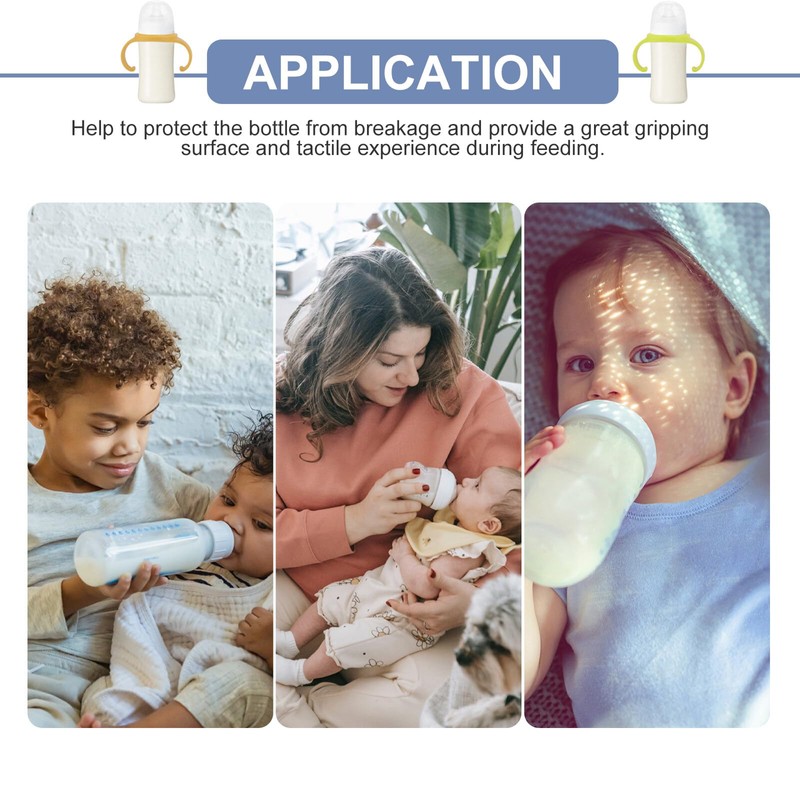 - Anti Slip & Healthy The baby bottle holder is made of food grade PP material, which is healthy and non toxic, ensuring baby's safety and health when using the bottle. The design of the bottle handle ensures that it is more firm to hold and less easily slipping, making the baby more stable and safer when in use.