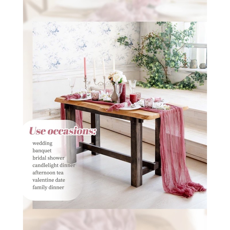 • 【High quality materials:】These cheesecloth table runners are made of high-quality fabric with beautiful pleats for a charming look. The soft,skin-friendly and wrinkle-resistant fabrics make this table runner more fashionable and elegant,elegant and smooth.Delicate and soft, this handmade boho table runner is an ideal décor accent for any occasion.