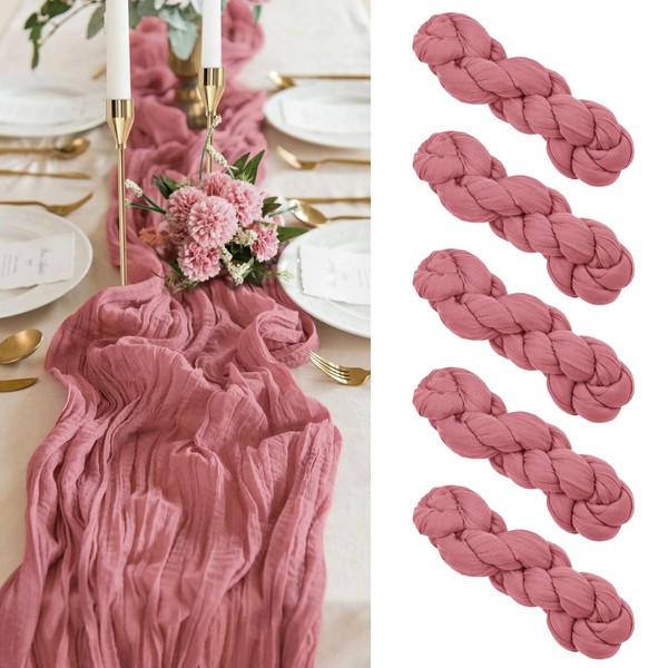 5 Packs Cheesecloth Table Runner Dusty Rose,10FT Gauze Bobo Table Runner Cheesecloth Fabric Semi-Sheer Table Runner for Wedding Reception,Boho Rustic Wedding Party Table Decor