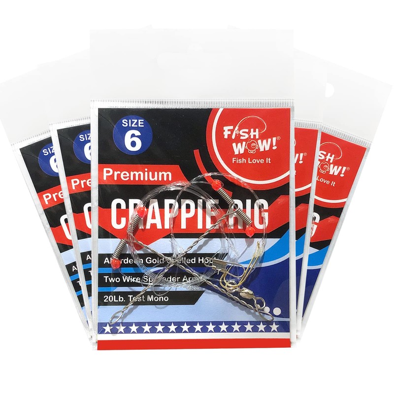 5 Packs Fish WOW! Crappie Rig with Two #6 Aberdeen Gold Hook Two Wire Spreader Arms