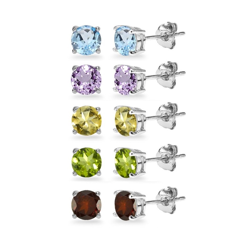 - FEATURE - This fine jewelry set display five pairs of round-cut gemstone studs in various colors. The set includes 5mm amethyst, blue topaz, citrine, garnet and peridot earrings. This earrings set in fine jewelry should be an addition to your gemstone jewelry collection. It can be purchased as stud earrings for men, stud earrings for women or stud Earrings. These multi-color gem studs are great accents for anything in your gem jewelry for women!