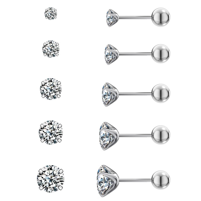 - GIFT PACKAGE - Includes 5 Anti-Allergy Women's Stud Earrings in 5 sizes, 3mm/4mm/5mm/6mm/7mm.Size: 20G = 0.8mm, Pin size: 8mm.