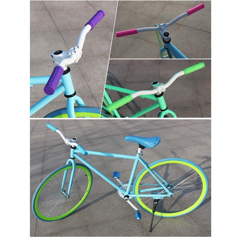 - Quantity & Size:5 Pairs Soft Rubber Bike Grips(black, blue, pink, purple and green);size: 11.5x2.2cm/4.5"L x 0.9"W