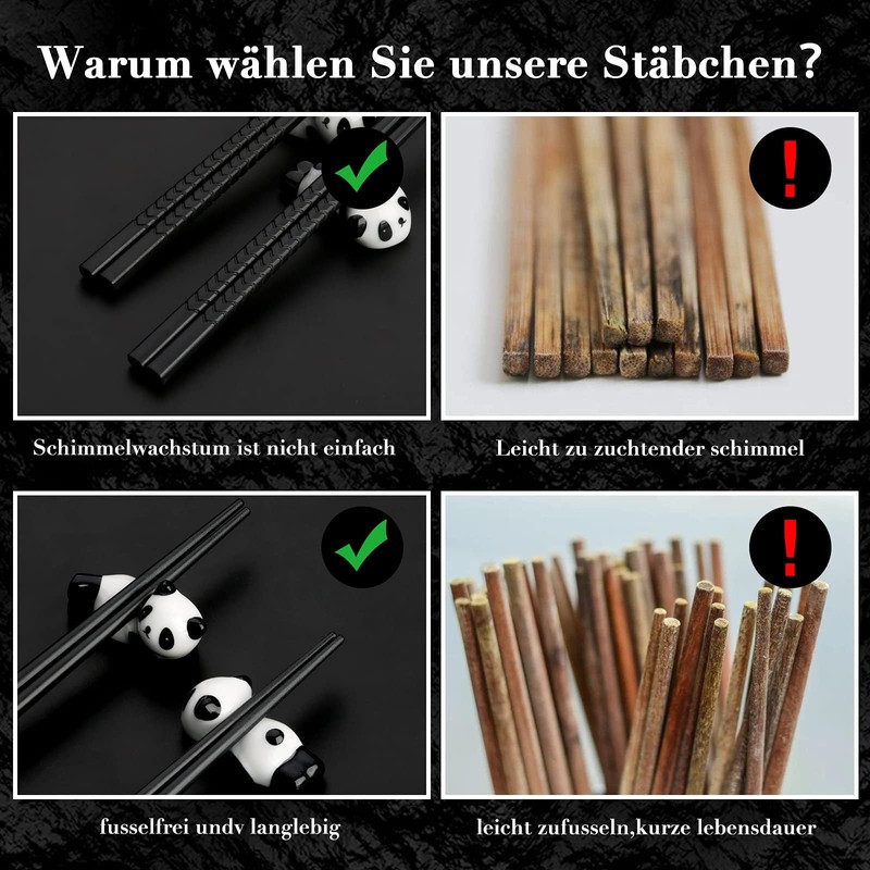 - ✿【Perfect Chopsticks Set】You will get 5 pairs chopsticks reusable metal and 5 pcs Panda ceramic holder. Reusable chopsticks are both antiseptic and environmentally friendly, they are an ideal replacement for wooden and plastic chopsticks. They are reusable and dishwasher safe.