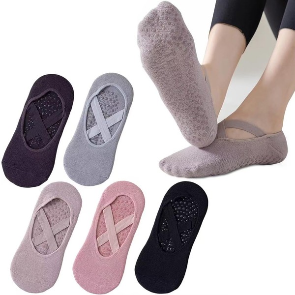 5 Pairs Pilates Grip Socks Non-Slip Yoga Socks for Women