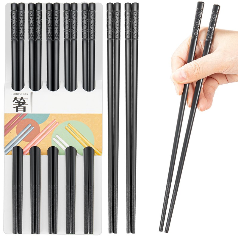 5 Pairs Reusable Chopsticks Dishwasher Safe,9.5 Inch Fiberglass Chopsticks Set, Japanese Chinese Korean Chopsticks for Food, Non-Slip, Easy to Use (Black Chopsticks) (D)
