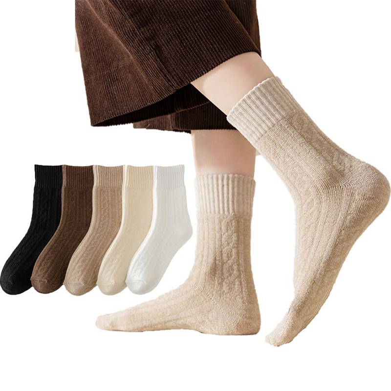 5 Pares Calcetines para Mujeres, Medias de Peluche, Calcetin Otoño y Invierno con Estilo, Calcetas Transpirables, Calcetines Moderados Paquete de 5 pares