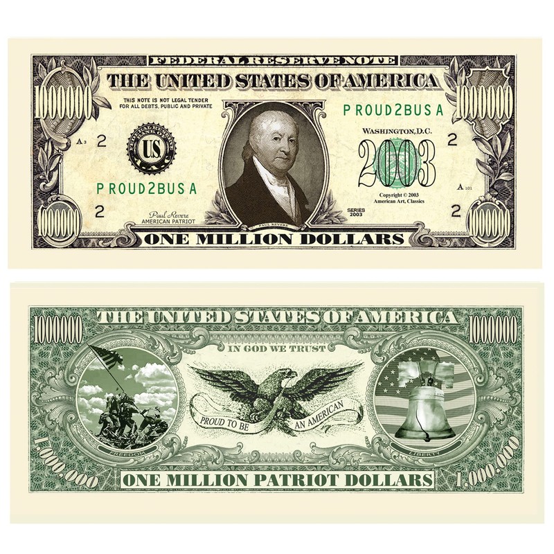 - Pack of 5 - American Patriot Million Dollar Bill.