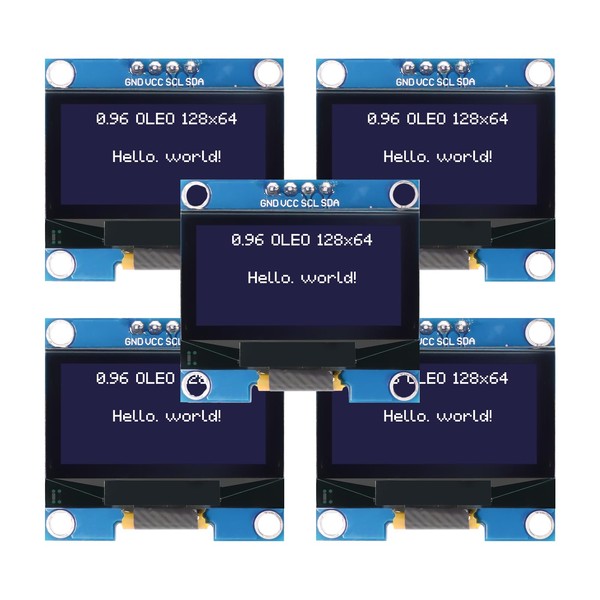 5 Pcs 0.96 Inch OLED I2C IIC Display Module, AYWHP 128x64 Pixel Serial Display Board, Module for Arduino Display and ESP32 Display Compatible with Arduino and Raspberry Pi(White)