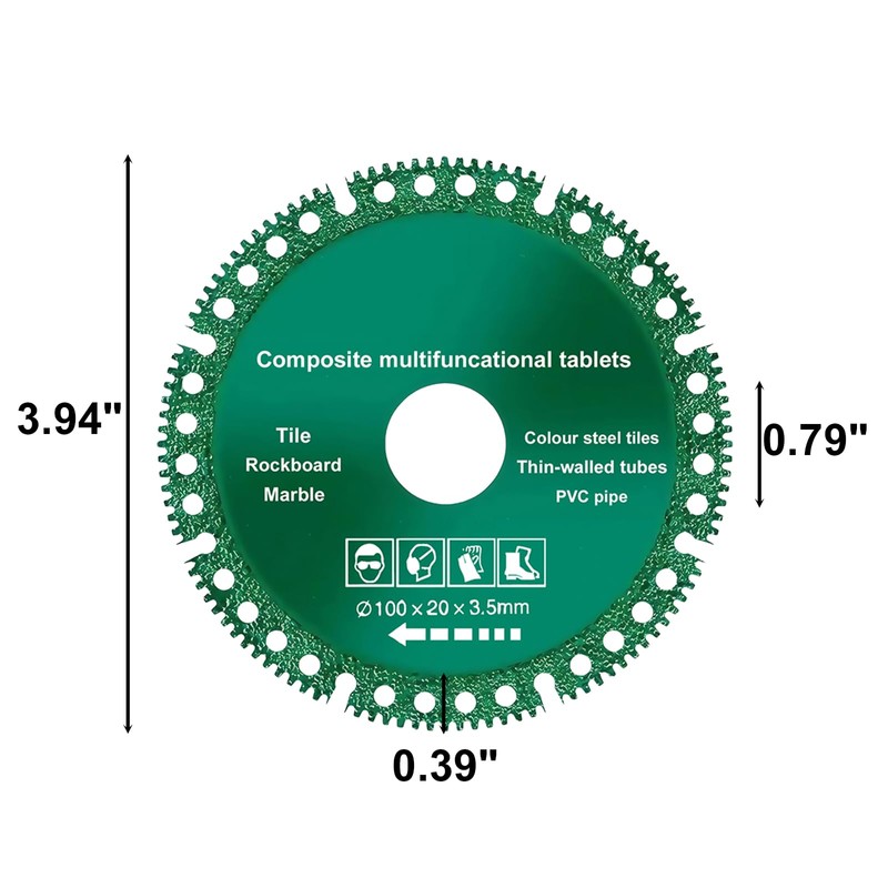 • Suitable for Multiple Materials: This indestructible disc smoothly cuts, chamfers and grinds PVC pipes, color steel tiles, thin-walled pipes, stainless steel, color steel tiles, square tubes, angles, marble up to 20mm, wood and ceramics.