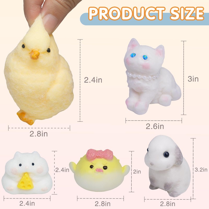 - 5Pcs Taba Animal Toys: You will receive 5 different animal toys: hamster, chick, cat, rabbit, pufferfish. These animal Squeeze toys are colorful and lifelike in shape. Each one is packaged in an opp bag, which is soft and delicate to the touch, and has an excellent decompression effect. The excellent elasticity makes you can't help but knead it
