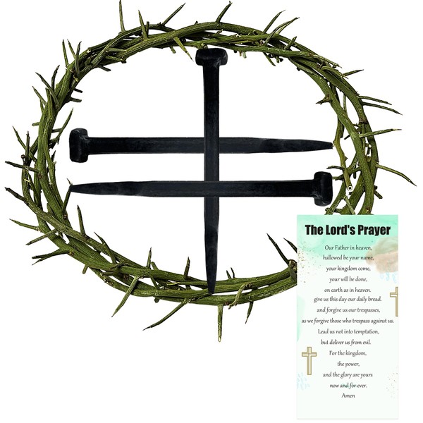 - Package Includes: Set of 1 Jesus Bible crown of thorns,3 crucifix iron nails ,1 prayer request card for Easter/Lent/Christmas decor. Let this thorn crown set serve as a beautiful expression of your faith and a daily reminder of God's love and grace.