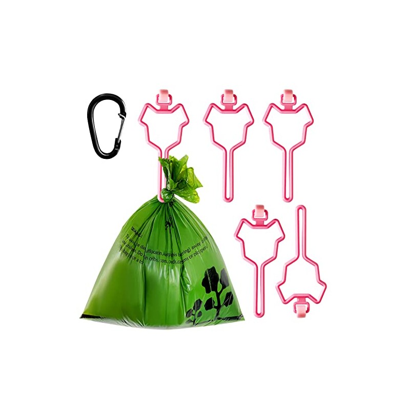 5 PCS Dog Poop Bag Holder,Dog Waste Bag Holder with Touch Fastener,Attachment for Garbage Bag Dispenser,Hands Free Garbage Bag Holder,Poop Bag Holder for Leash, Fits Any leashes(Pink)
