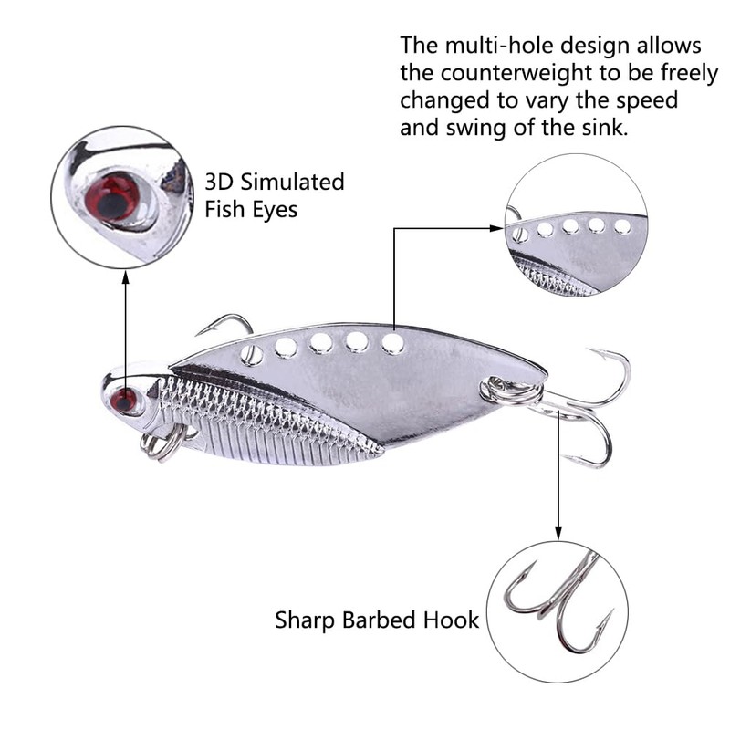 【Highly Attractive】Metal fishing bass bait have a smooth surface allowing them to reflect light at multiple angles underwater, emitting sonic vibrations as they swim to quickly catch the eye of fish for attracting their attention, ideal for aggressive fish or fish in deeper water.