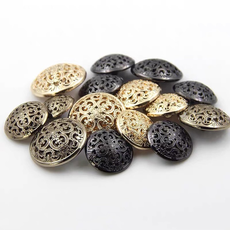 5 Pcs Hollow Metal Button Black Sliver Gold Buttons Round Decorative Button for Clothes Sewing Accessories (Golden, 18mm)