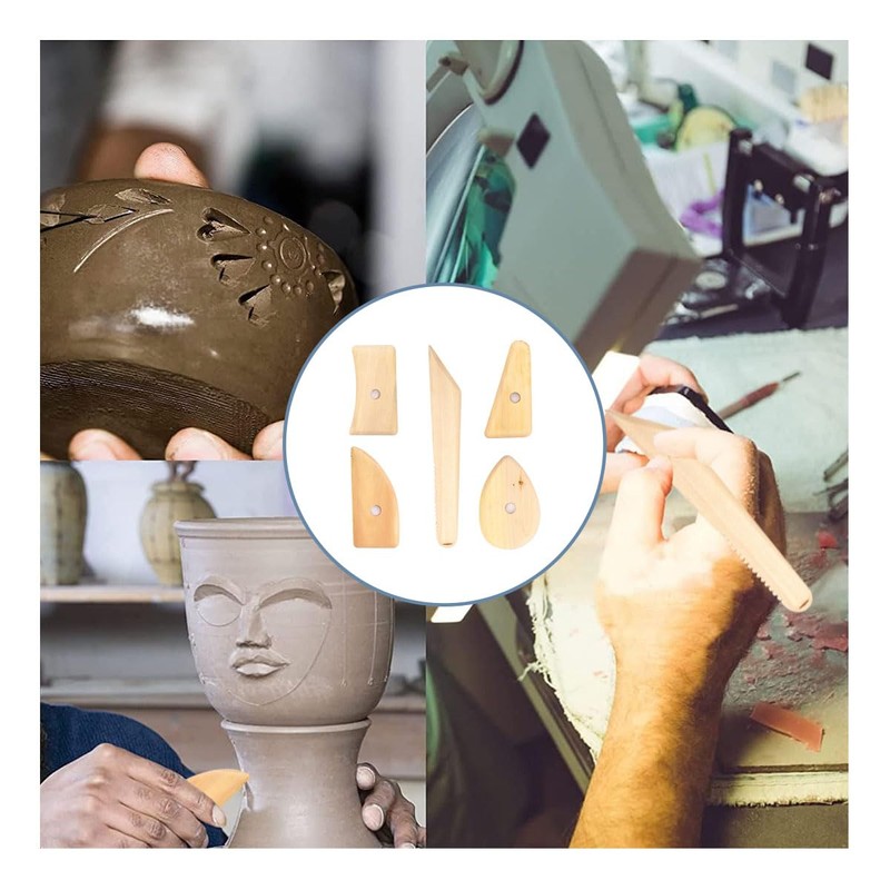 5 pcs Pottery Tools Set, Pottery Supplies, Trowel, Woodcast, Pottery, Clay Spatula, Clay Carving Tool, Clay Spatula, Wood, Igua Making, Modeling Tool, Modeling Tool, Sculpture, Sculpture, Sculpture,