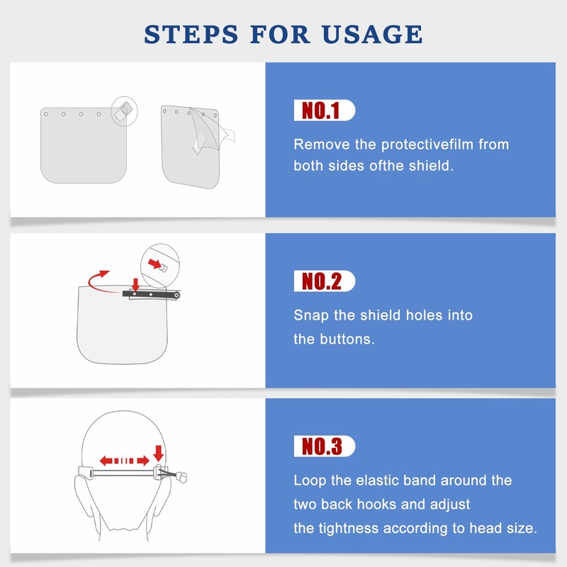- 【Economic Reusable】: The face shield can be easily cleaned with water. It is recommended to wipe it with alcohol. Easy to use and Environmentally Friendly.