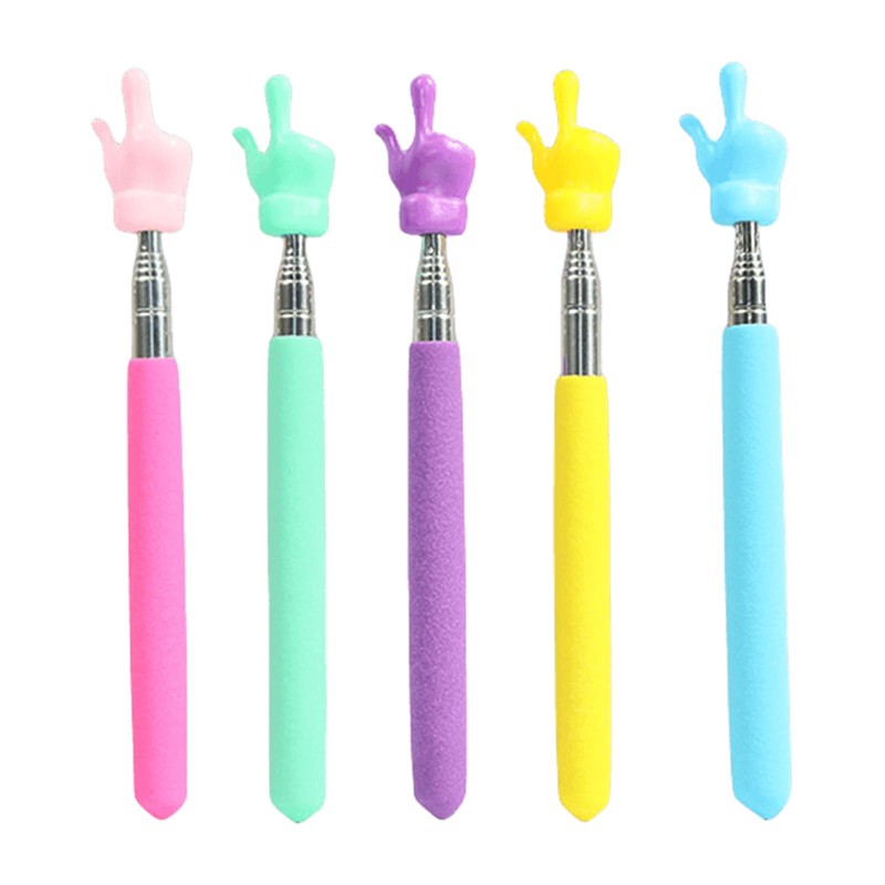 - What You Will Get:Each purchase includes 5 retractable pointers in vibrant colors (pink, yellow, green, purple, and blue), ensuring an ample quantity to meet your needs.This finger pointer set is not only a practical teaching tool but also aims to attract students' attention and enhance their interest in learning.Additionally, customer support is offered for addressing any issues with the teacher supplies.