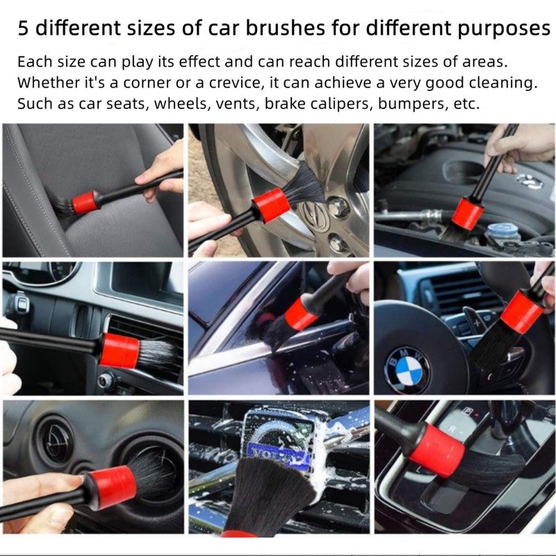 5 Piece Car Detail Brush Interior Cleaning Set Comes with 5 Different Sizes of Soft, Detail Cleaning Brushes for Cleaning The Interior and Exterior of Your car, Dashboard, Engine, Seats