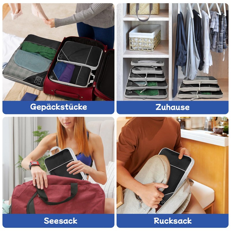 - Suitable for travel and storage at home: backpack organiser is perfect for hand luggage, weekend bags, handbags and suitcases. It is also ideal for business trips, family holidays, leisure trips, camping and hiking. Compression bag travel is a must-have for travel and a great way to store your clothes in everyday life.