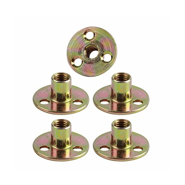 5 Piece Flange Nut M6 / M8 / M10 Brad Hole T Nut Galvanised Iron with Round Base (M10)
