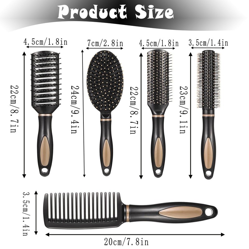 - Hair brush in a set of 5: you will receive 5 different types of hair brushes, curling comb, straightening comb, airbag comb, styling comb, flat comb that can meet your different daily needs.