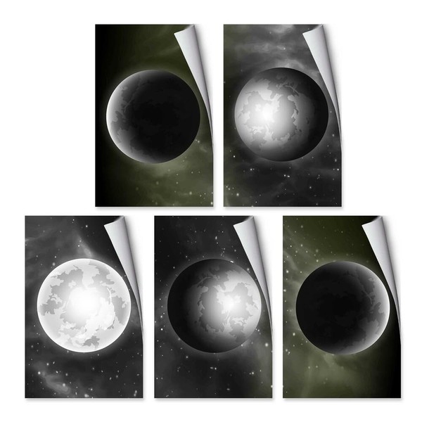 5-Piece Moon Phases Wall Art Set | 11x17 Astronomy Decor Prints