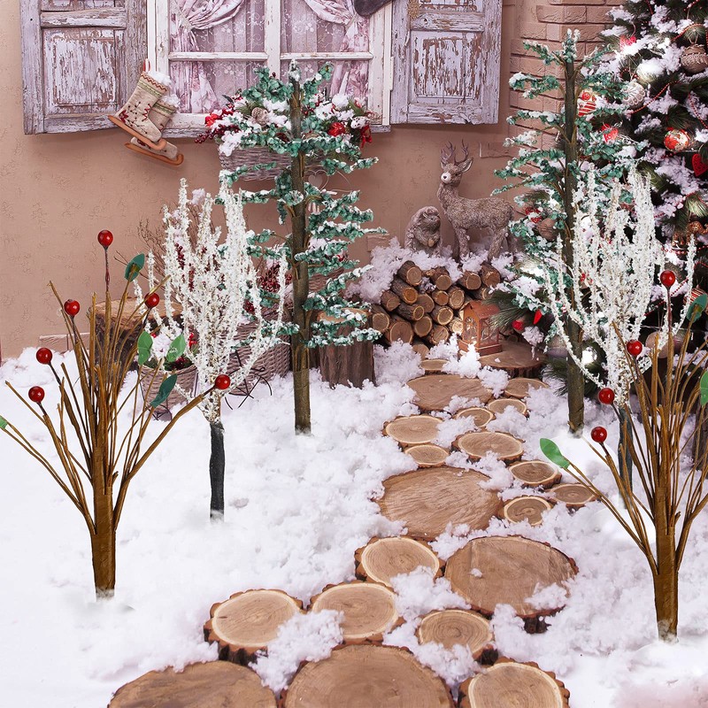 - Widely applied: with these winter snow artificial trees, you can decorate many places to show off your taste, both indoor and outdoor, such as gardens, yards, livingroom, dining table, balcony, window and so on, you can also use them as photographic props to add more beautiful material to your photos