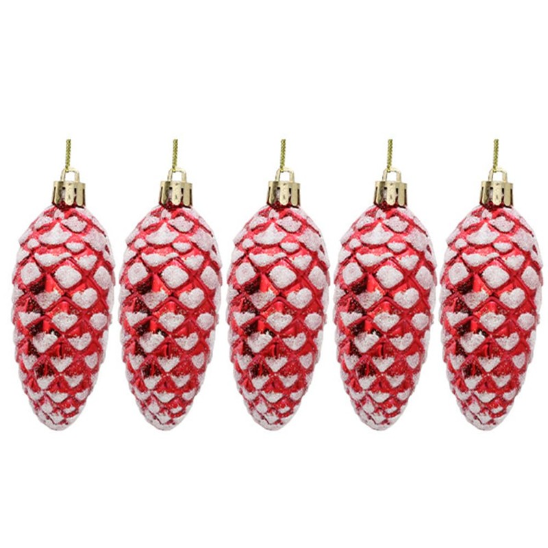 5 Pieces Pine Cone Baubles for Christmas Tree Decorations 92MM Shiny and Glitter Hanging Pine Cones Baubles, Red