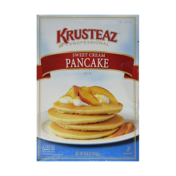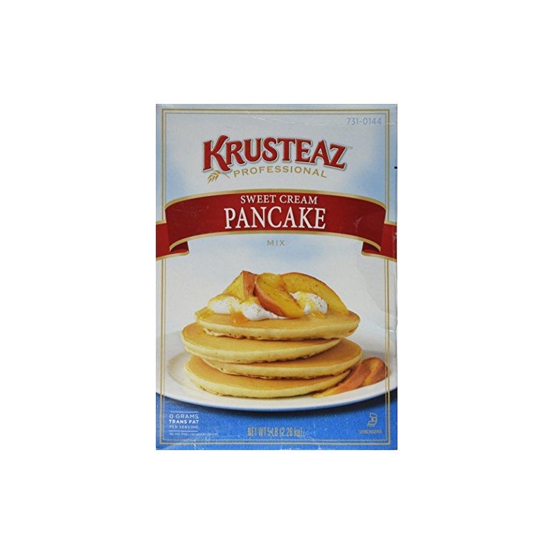 5 Pounds Krusteaz Sweet Cream Pancake Mix. Just add water. Zero grams trans fat. Recipes included on side panel. High altitude instructions. Quick & easy to prepare. Restaurant quality.