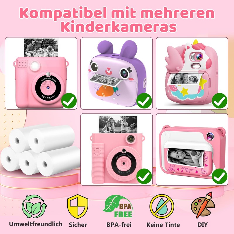 - Thermal Paper for Kids Instant Cameras: This printable paper can be used as craft paper. Children can not only have fun photographing, but also live out their imagination and creativity! If in doubt, our team will be happy to assist you.