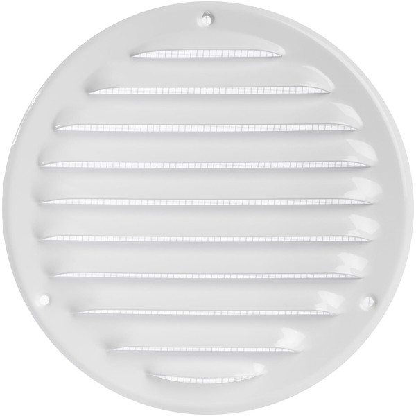 HVAC OV 5 Inch White Round Metal Vent Cover - Soffit Exhaust Vent with Mesh Screen - Return Air Vent Grille - HVAC Register Vent Covers for Home Wall - Weatherproof Cold Air Return Vent Cover