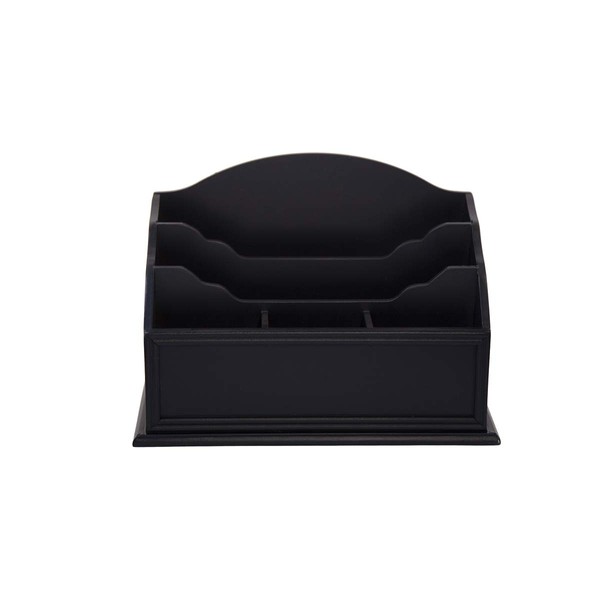 Designstyles Black Wooden Desktop Letter Holder – 5 Compartment Mail and Stationary Organizer – Premium Quality Wood Table Top Sorter for Pens, Pencils and More
