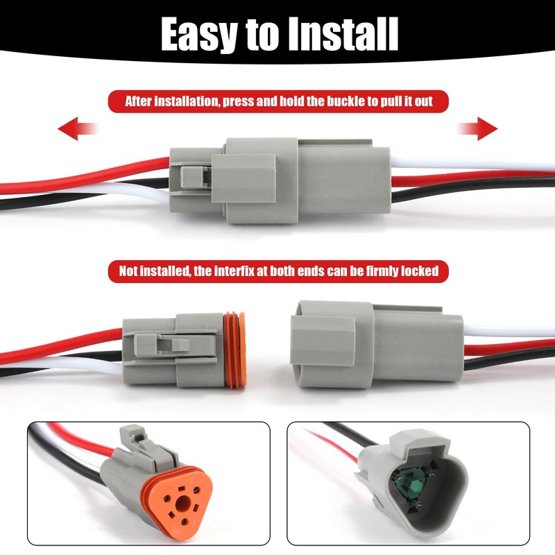 - Waterproof Design: DT connector use quality rubber seal, which are waterproof and dust resistance. No loss of electronic quality or leakage after installation, making it safer and more reliable to use.