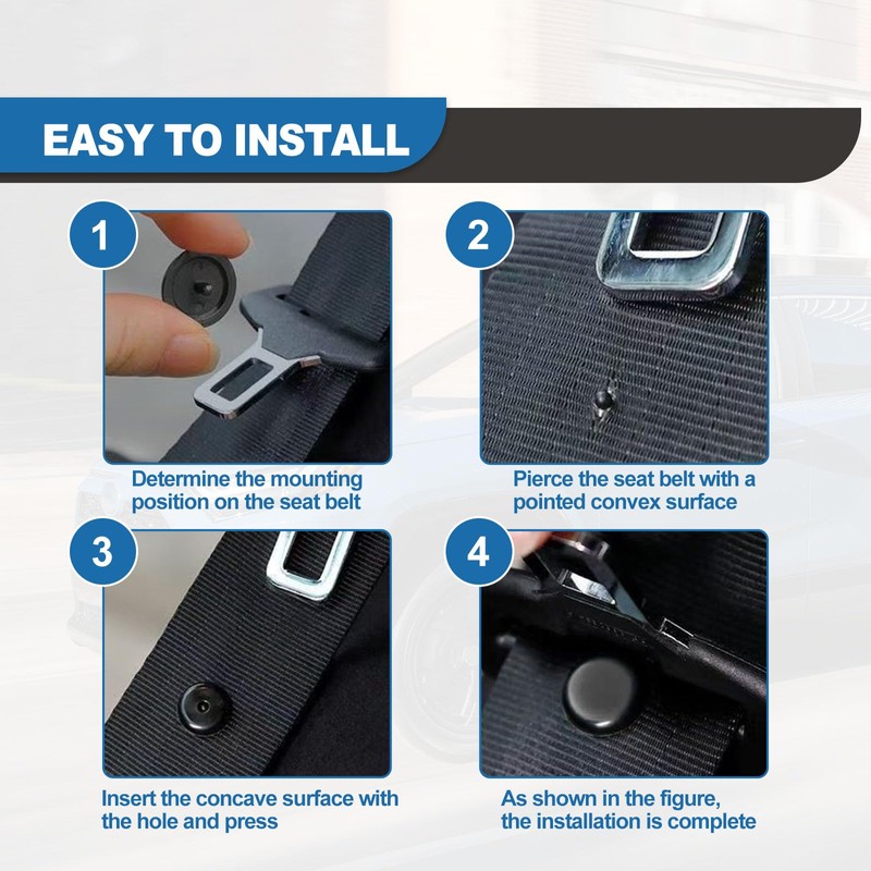 - Easy to install: Our Safety Belt stopper Just pass the pin through the Safety Belt, then fasten snap the male and female buttons together, squeeze by hand to make it more secure.