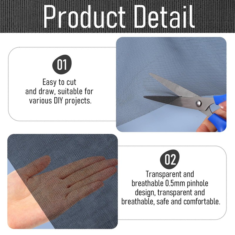 - Package Includes: 5 sheets of fursuit eye mesh, each measuring 11.8in x 7.87in, with a thickness of 0.1mm and a hole diameter of 0.5mm. The sufficient quantity and size meet your diverse crafting needs, making it an essential addition to your fursuit accessories.
