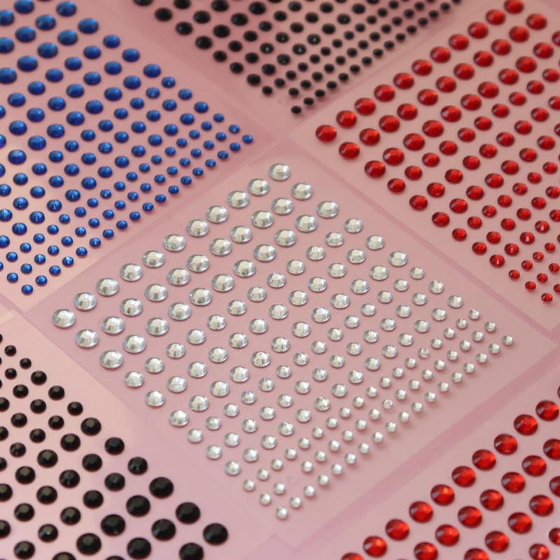 - Package includes:You will receive 5 sheets of stick on rhinestones, in 4 sizes: 6mm, 5mm, 4mm and 3mm. Sufficient quantity and sizes will meet your various decorative need, Self adhesive rhinestones of different sizes are not only suitable for body art, but for kids craft.