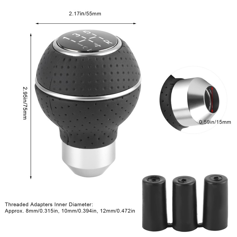 5 Speed Gear Shift Knob Stick, Universal Car Gear Shift Knob, Leather Gear Shifting Knob with 3 Sizes of Threaded Adapters for Manual or Automatic Transmission Cars, Suitable (A (Black))