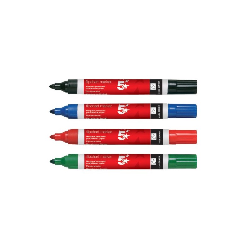 5 Star Flipchart Marker Pen Water-based Line Width 2 mm Assorted [Pack of 4]