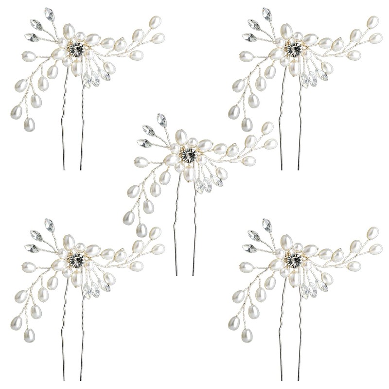 - Elegantes Brauthaar-Pins-Set: Dieses Paket enthält 5 exquisite Brauthaarspangen mit künstlichen Perlen, Strasssteinen und strapazierfähigem Kupferdraht. Jede Haarnadel ist etwa 8,5*11 cm groß und wurde entwickelt, um sicher an Ort und Stelle zu bleiben und Vielseitigkeit für verschiedene Frisuren zu bieten.