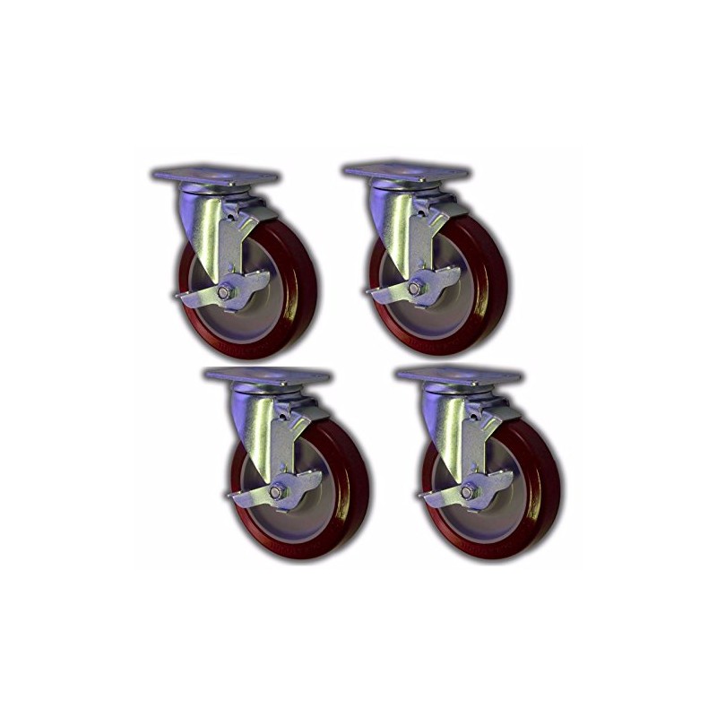 5" Swivel Caster with Maroon Polyurethane Wheel & Top Brake 1200# - 4 Pack