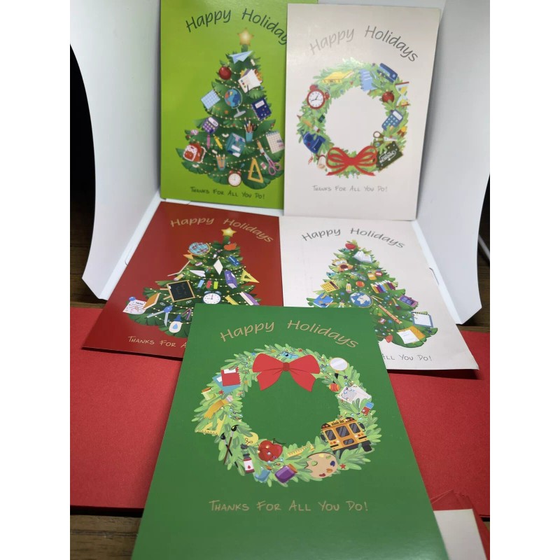 5-Teacher “Happy Holidays” Cards, Envelopes and Stickers