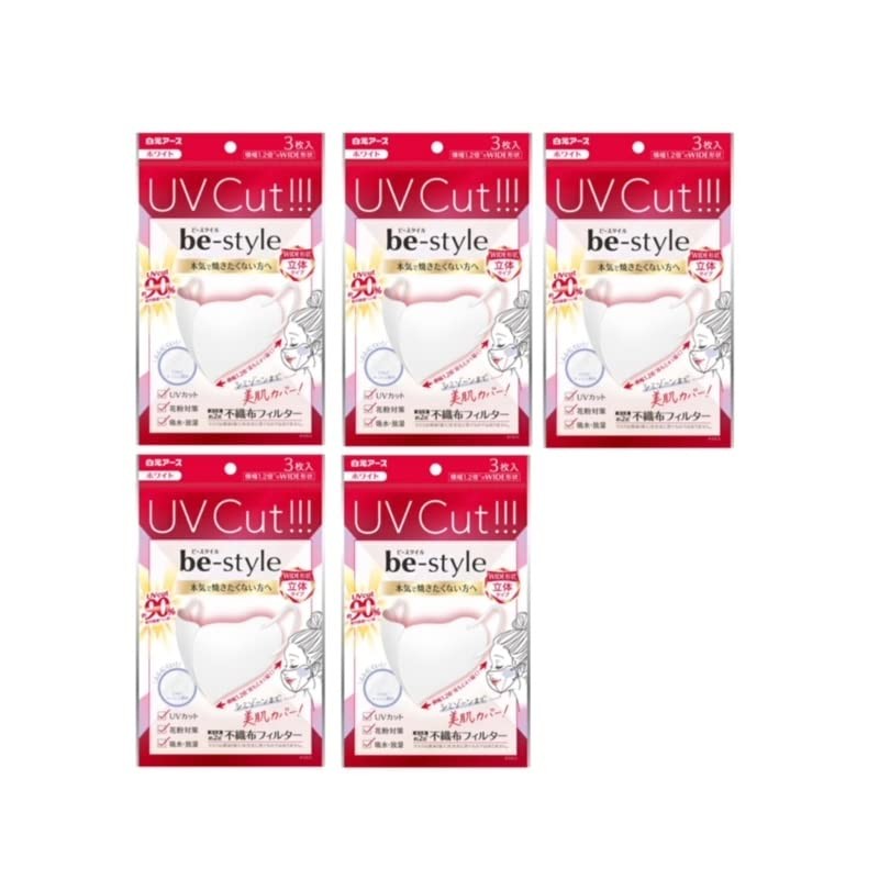 [ビースタイル] 5個セット 白元アース UVカットマスク ホワイト 3枚入 立体タイプ