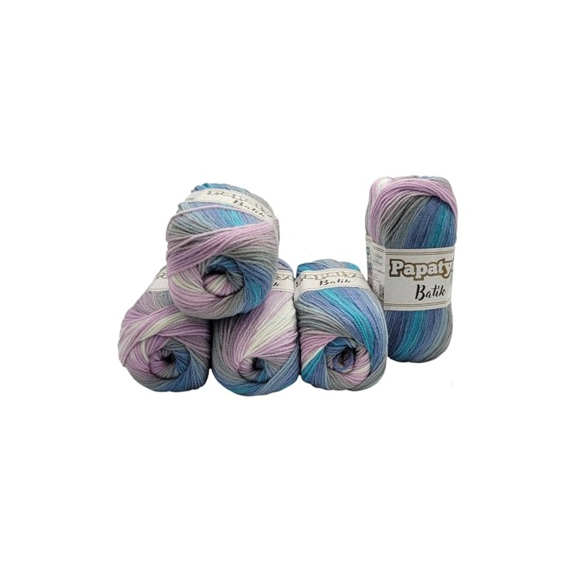 5 x 100 g Knitting Yarn Papatya Batik Multicoloured with Colour Gradient, 500 g Knitting Wool Colourful, Colour Gradient Yarn (Lilac Blue Grey White 554-40)