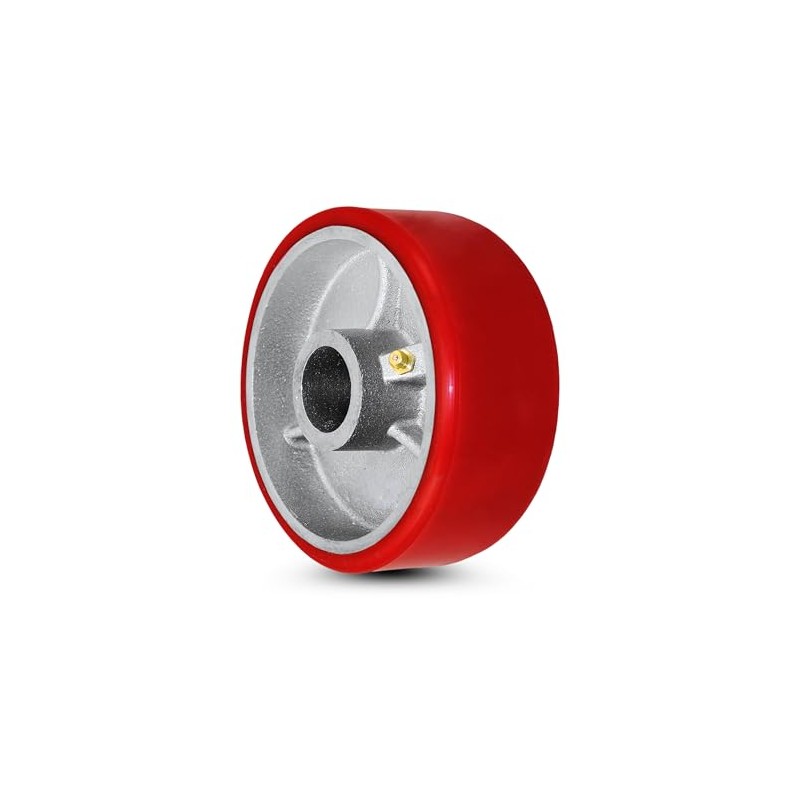 5" x 2" Red Polyurethane on Silver Cast Iron Core Wheel - 1,100 lbs Capacity, Fits 1/2" & 3/4" Axels and Shafts